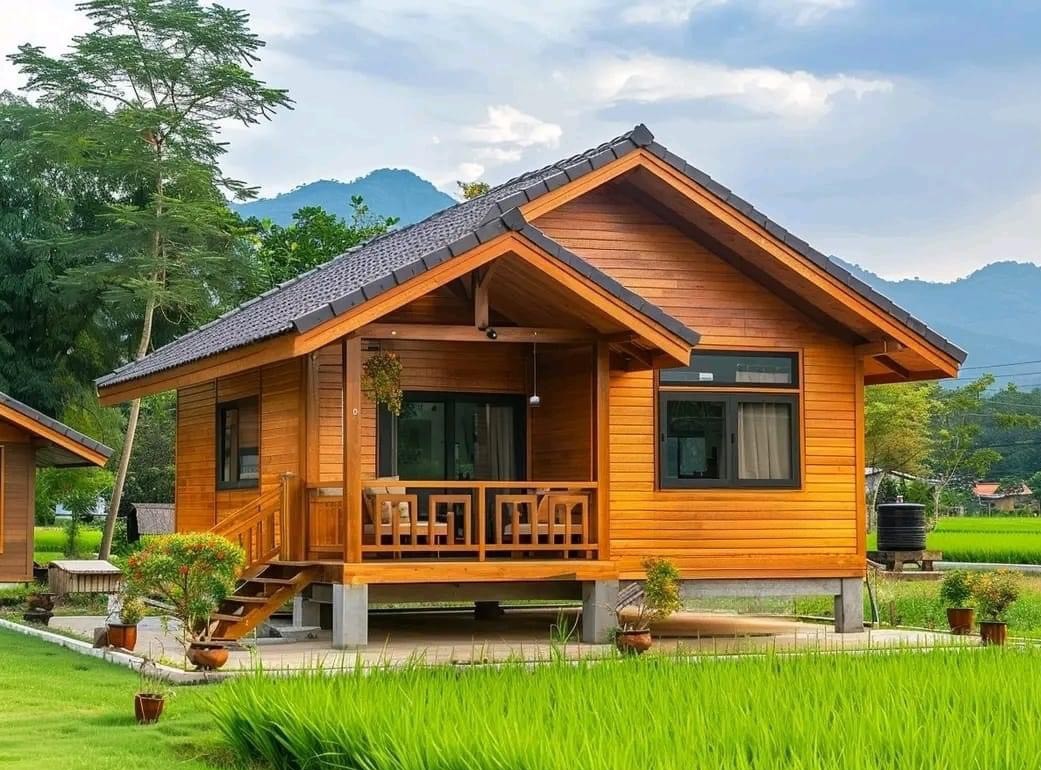 Thiết kế nhà lắp ghép bằng gỗ thường thấy ở các biệt thự, homestay